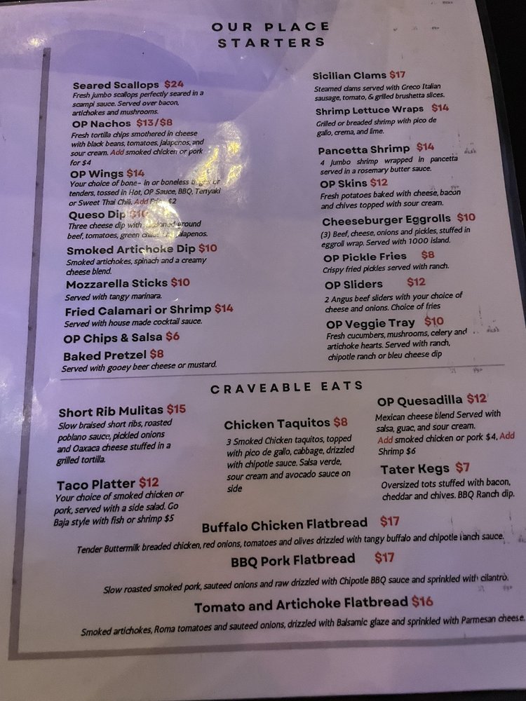 Introducing Our Place, a dynamic New American restaurant in Lake Forest, CA. This cozy spot offers a wide array of amenities, including live music, karaoke, and happy hour specials. The welcoming atmosphere and top-notch service make it a favorite among locals and visitors alike. Customers rave about the delicious food, with menu highlights like Sticks and Stones, Tater Kegs, and Chicken Alfredo fettuccini. The attentive staff, led by owner Cliff, creates a family-like vibe that keeps patrons coming back. Whether you're looking for a relaxing night out or a fun-filled evening with friends, Our Place has something for everyone. With gender-neutral restrooms, outdoor seating, and dog-friendly options, this restaurant truly caters to all. Come experience the warmth and charm of Our Place and see why it's the perfect place to unwind and enjoy great food and drinks.